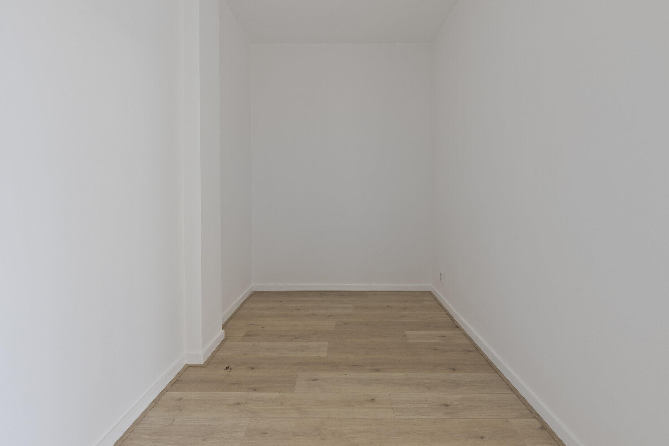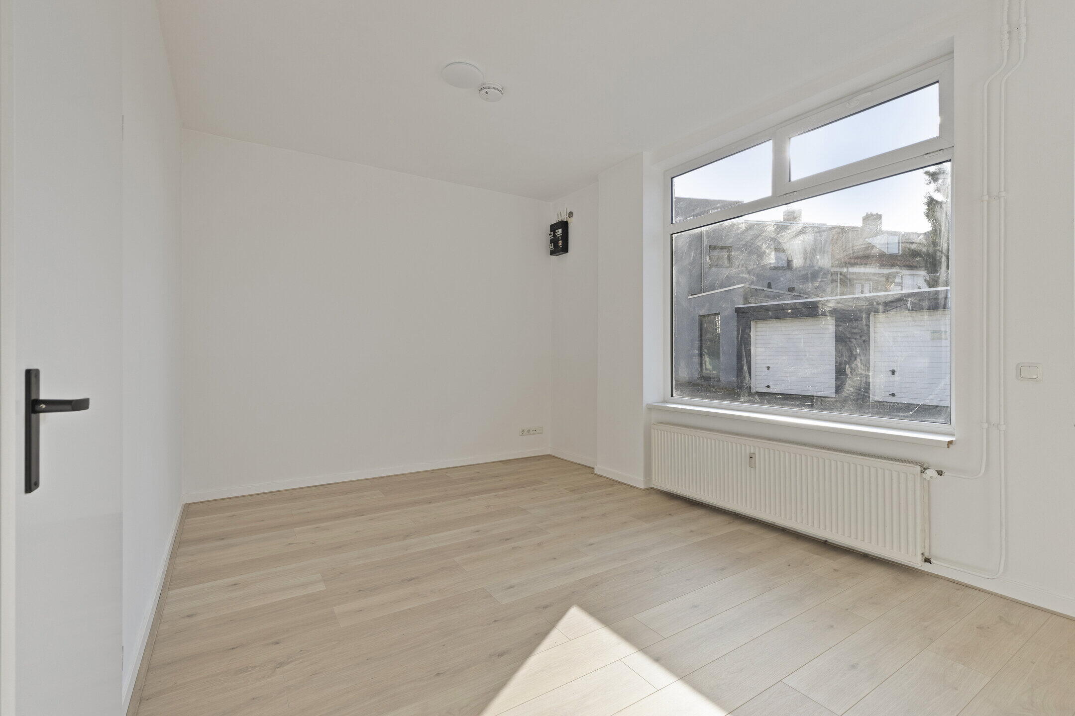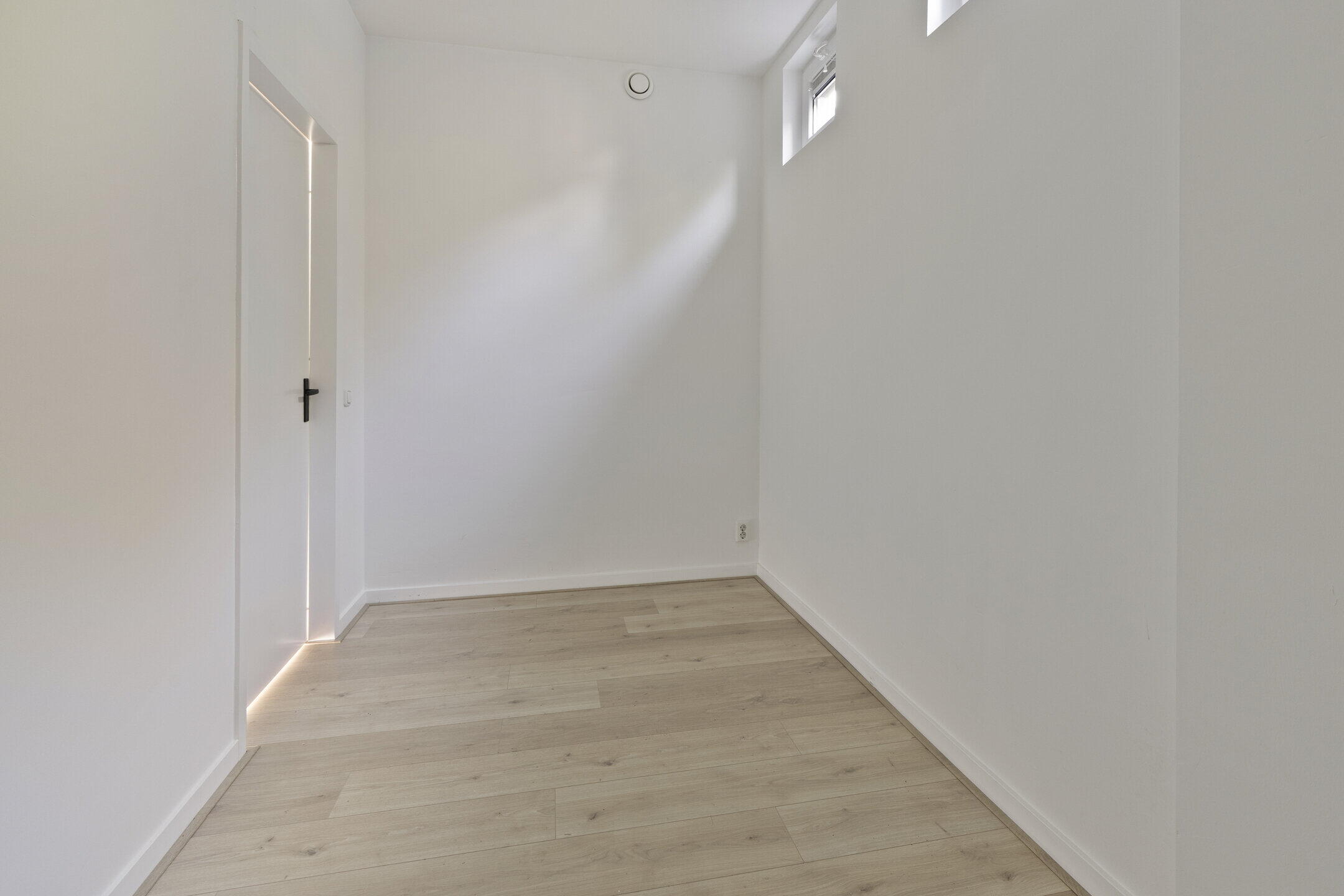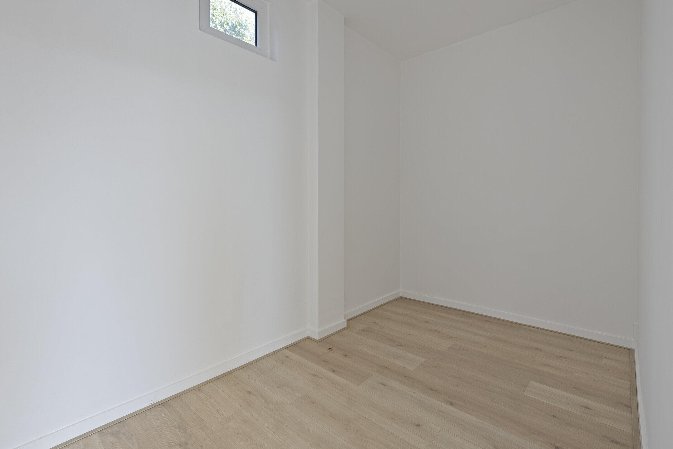 Aan de achterzijde van de woning bevindt zich de slaapkamer (ca. 3.96 x 2.04m). De slaapkamer is eveneens voorzien van een nette laminaatvloer en een strakke wand- en plafondafwerking.