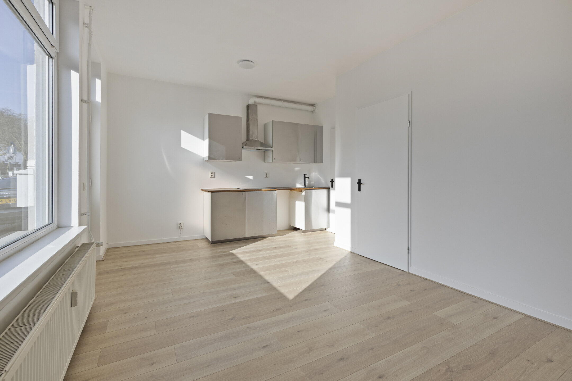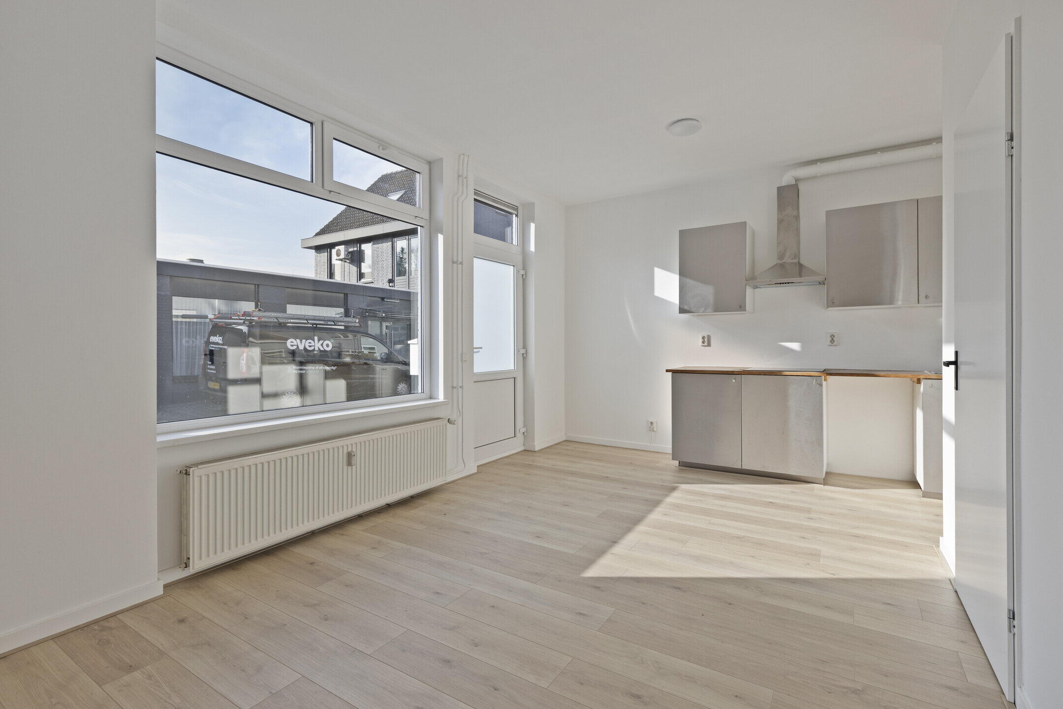 Via de eigen voordeur kom je in de woonkamer (ca. 5.64 x 3.90 m), voorzien van een nette laminaatvloer en een strakke wand- en plafondafwerking. Dankzij de grote raampartijen geniet de woonkamer op ieder moment van de dag van een prachtige lichtinval.